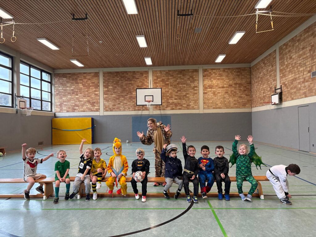 Einige Kinder erschienen in fantasievollen Kostümen – von Superhelden über Tiere bis hin zu kleinen Drachen – und sorgten so für eine besondere Atmosphäre beim Training. Auf der Bank warteten die jungen Fußballer gespannt auf ihren Einsatz. Mit viel Energie ging es anschließend auf das Hallenfeld.