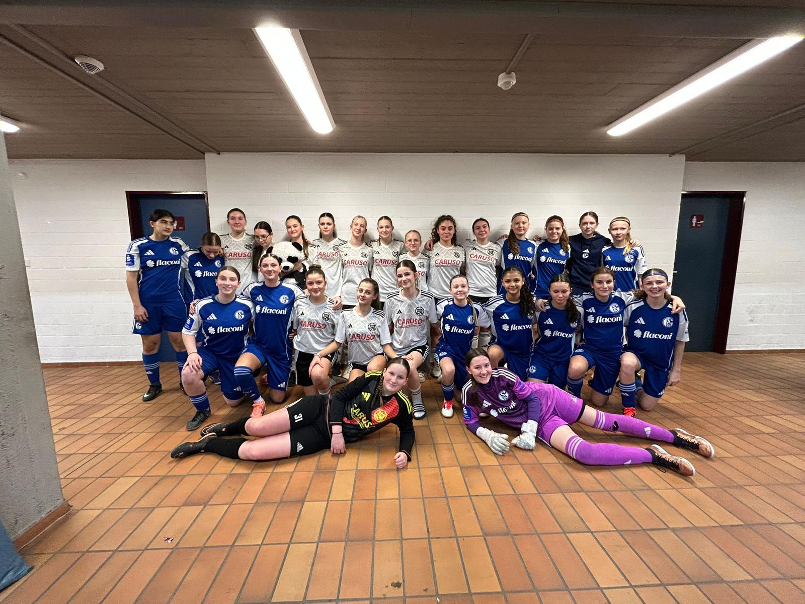 Am Sonntag traten unsere C1-Mädchen dann beim HGB Cup an und trafen dort auf namhafte Vereine! Dieses Turnier war für das Team eine tolle Erfahrung, auch wenn die Mädels rein punktetechnisch nicht viel erreichen konnten. „Wir haben an Erfahrung gewonnen und sind stolz darauf gegen Teams wie dem FC Schalke 04 oder RW Oberhausen gespielt zu haben.“, so der Coach. Mit dem späteren Turniersieger, dem Nachwuchs des FC Schalke 04, wurde dann auch noch ein gemeinsames Foto geschossen!