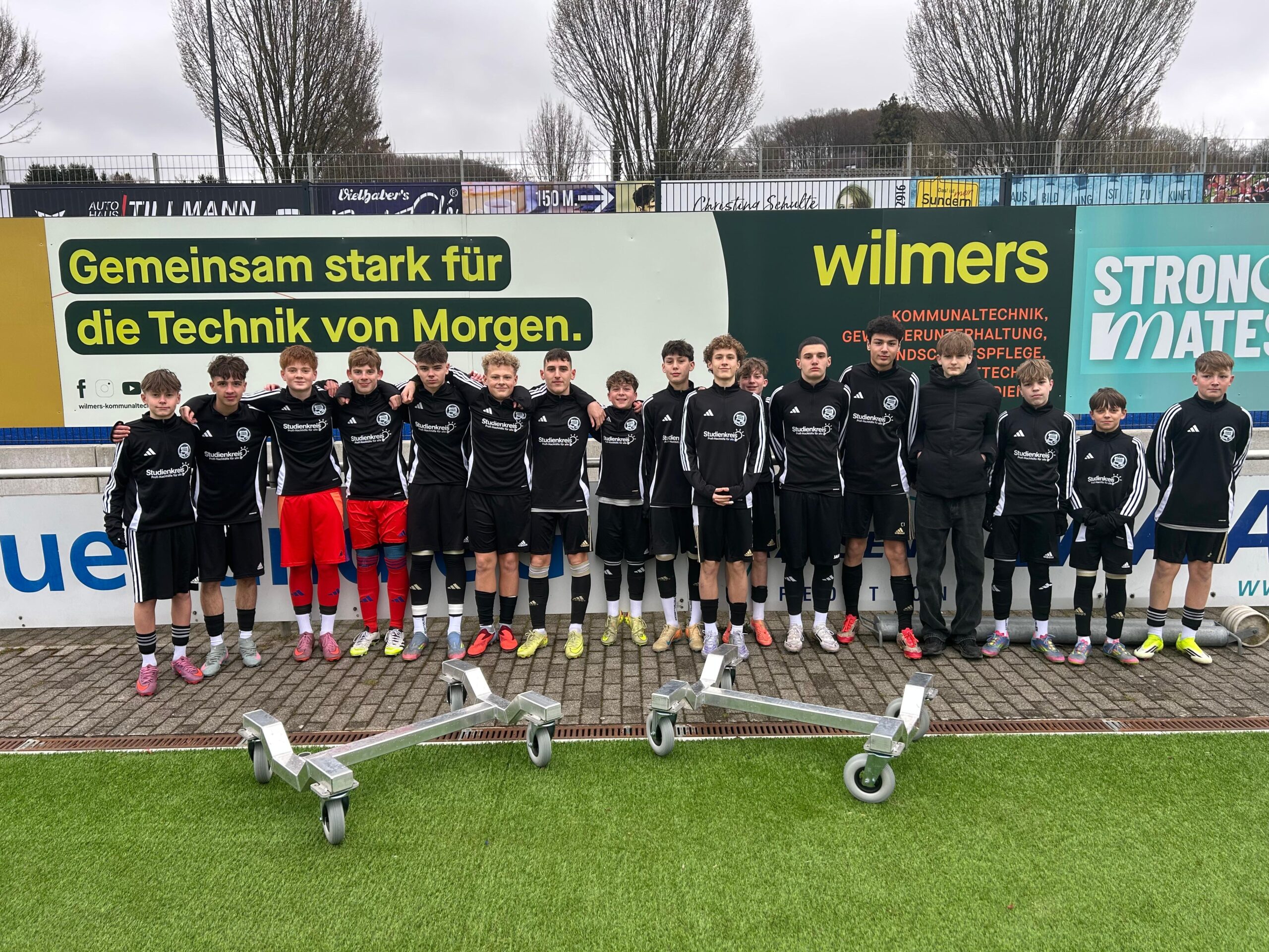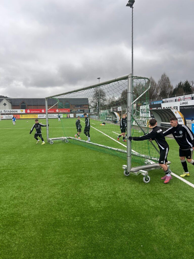 „Gemeinsam stark für die Technik von Morgen“ – diesen Slogan setzt die Kommunaltechnik Wilmers GmbH nun beim TuS Sundern um. Das Unternehmen übergab zwei neue Transportwagen für die großen beweglichen Tore an die Spieler der Röhrtalschmiede.“Diese Anschaffung ist ein Gewinn für alle Teams und den Platz“, sagt Andreas Mühle. „Die Tore können nun einfach über den Platz gerollt werden, statt getragen und geschoben zu werden. Das ist nicht nur nachhaltig, sondern auch platzschonend.“