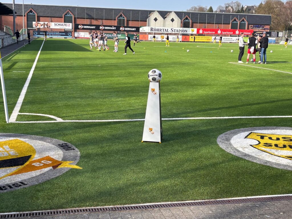 Ein neuer Spielballständer schmückt nun das Röhrtalstadion. Die Idee kam Carmelo Alfano beim Spiel der U17 beim ASC Dortmund. Dort war ebenfalls ein solcher Ständer im Einsatz. Durch die Unterstützung vom Unternehmen Stahl&Raum, nahm Carmelo die anschließende Lackierung dann selbst vor. „Dieser Spielballständer soll unserer U17 im Westfalenpokal gegen Münster eine zusätzliche Motivation sein.“, so Alfano. Die Feuertaufe bekam der Ständer bereits beim letzten Heimspiel der 1.Herrenmannschaft. Feuertaufe bestanden – Münster kann kommen!