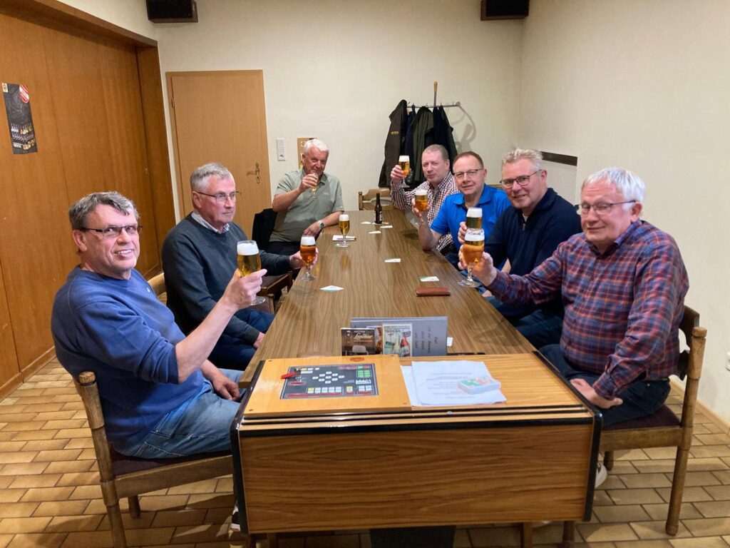 Die passenden Pokale aus dem Depot des Stadtkrugs wurden direkt überreicht. Es handelt sich dabei um Wanderpokale – die Titelverteidigung ist also bereits ausgemacht. Eine Revanche dürfte sicher folgen.Aus der AH-Kasse gab es an diesem geselligen Abend fünf Runden Bier für alle.